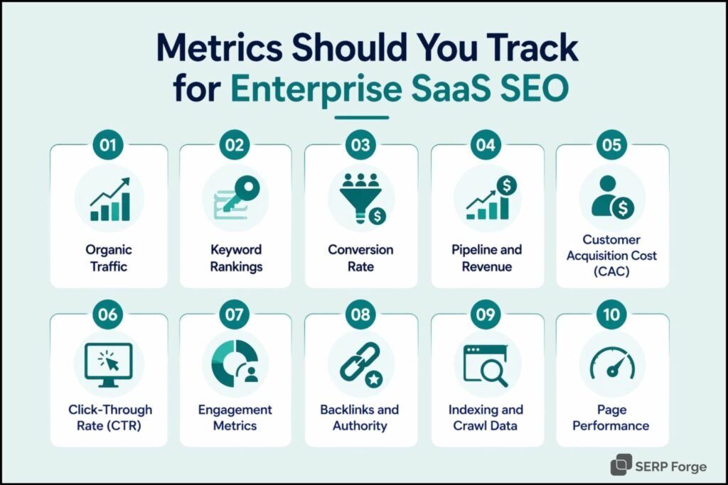 In the context of enterprise SaaS SEO, key metrics to track: