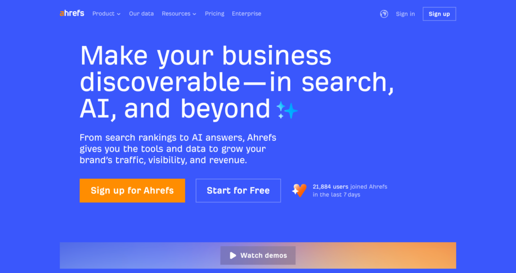 Ahrefs is known for its strong backlink database and reliable SEO data, making it a go-to tool for competitive analysis and link-building strategies. It provides deep insights into how websites grow their organic traffic.